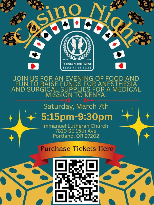 Casino Night is coming up, and we’re excited to invite our community to an evening of fun. This lively fundraiser will feature classic casino games, great company, and delicious food included with every ticket. Funds raised will go directly toward purchasing critical anesthesia and surgery supplies, helping medical teams provide life-changing procedures to patients in need.